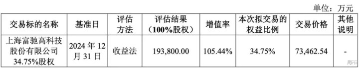 本次收购,遴荐收益法估值,对上海富驰100%股权的评估价值为19.38亿元,按照股权比例,本次收购的34.75%股权的买卖价应为6.73亿元。但领先的重组有设想中买卖作价却是7.35亿元,溢价了9%。