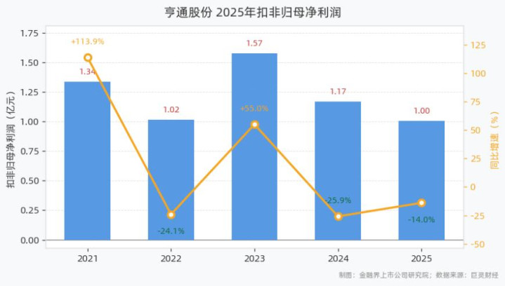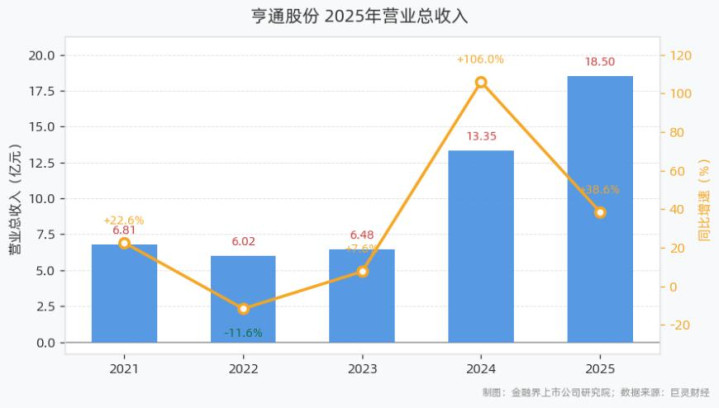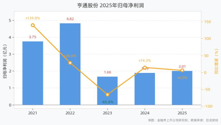 4月20日,亨通股份发布2025年年报。呈报裸露,2025年公司已毕商业总收入18.50亿元,同比增长38.60%;已毕归母净利润2.01亿元,同比增长6.05%;扣非归母净利润为1.00亿元,同比下滑13.97%;基本每股收益0.07元,加权平均ROE为5.70%;目的活动净现款流为-2.11亿元,同比下滑573.51%。